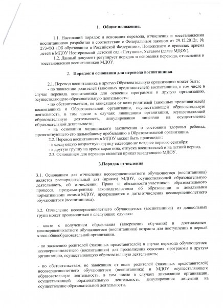Порядок и основания перевода, отчисления и восстановления обучающихся (воспитанников)